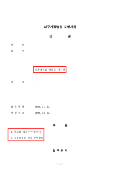 그 결과, 상대방의 부재에도 불구하고 의뢰인의 간절한 이혼 의사가 재판상 충분히 인정되어,