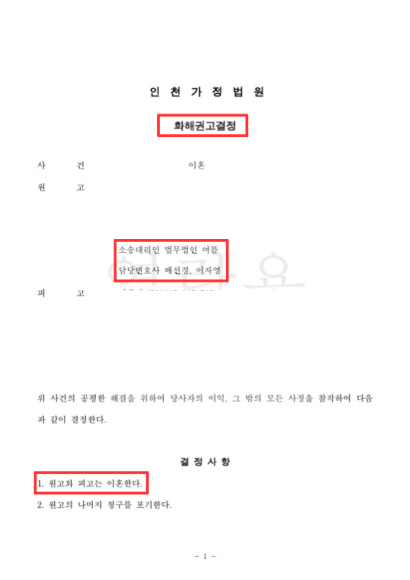 여기에 상대방의 자필 동의서 제출이라는 강력한 증거를 결합함으로써 화해권고결정을 이끌어냈습니다.