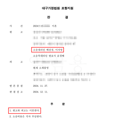 그 결과, 재판부는 의뢰인의 간절한 이혼 의사와 혼인 파탄의 명백성을 인정하여,