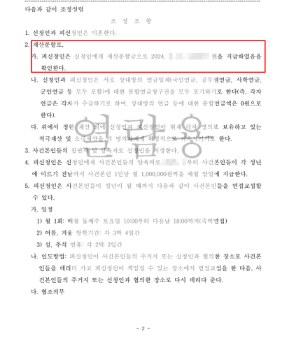 재산분할, 양육권 모두 조정조서에 반영되어 법적 효력 확보