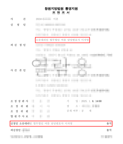 결국, 법무법인 여름은 신청인을 대리하여 조정이혼을 신청했고,