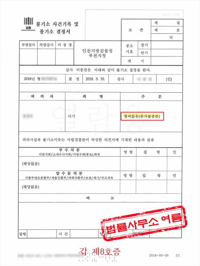 “사기의 고의나 기망 행위는 전혀 인정되지 않는다”며 의뢰인에게 ‘혐의없음(무혐의)’ 처분을 내렸습니다.