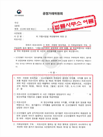 공정거래위원회에 신고하였고, 여름이 이 사건을 대리하였습니다