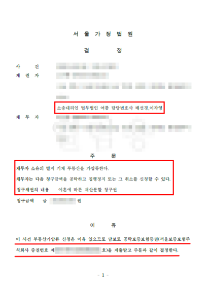 그 결과 신속하게 가압류 결정을 이끌어낼 수 있었습니다.