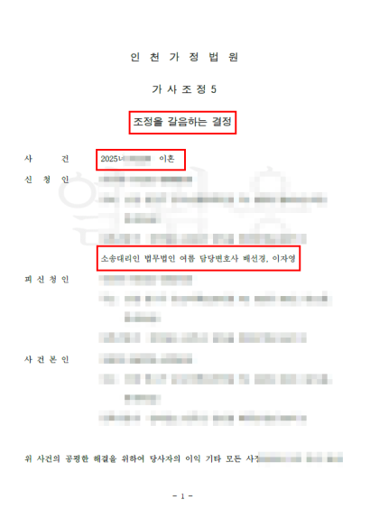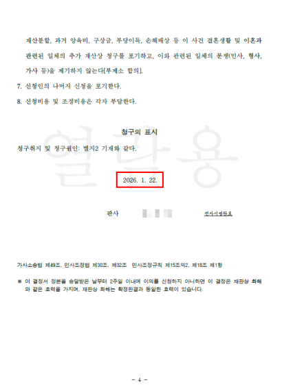 크리스마스 이브 접수 후 화해권고결정으로 한 달도 안 돼 이혼 확정