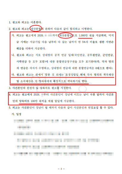 - 과거양육비를 포함한 이후 일체의 재산상 추가 청구 포기(부제소합의) 확정