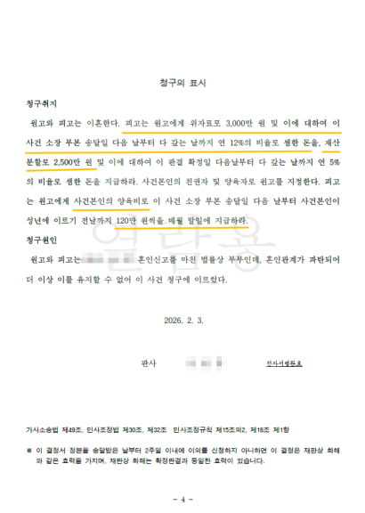 - 양육비: 월 120만 원 청구 → 월 100만 원으로 감액