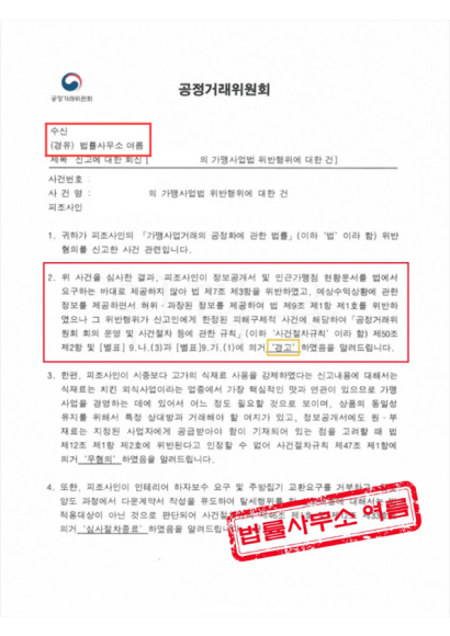 허위·과장된 예상수익 정보 제공으로 공정거래위원회 ‘경고’ 처분을 받아낸 사례