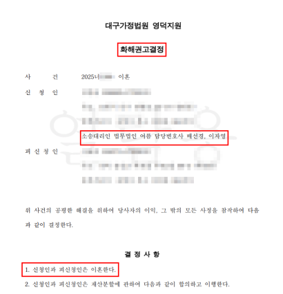 → 의뢰인 법원 출석 없이 조정이혼 성립