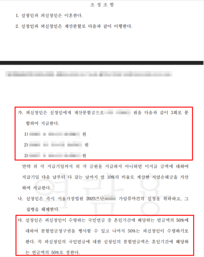 * 국민연금 분할도 혼인 기간의 50%로 명확히 확정