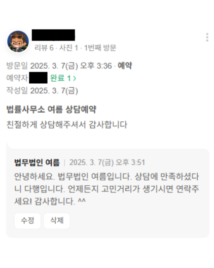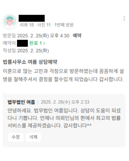 이혼 관련 상담 너무 만족스러웠어요