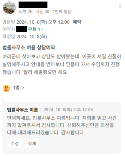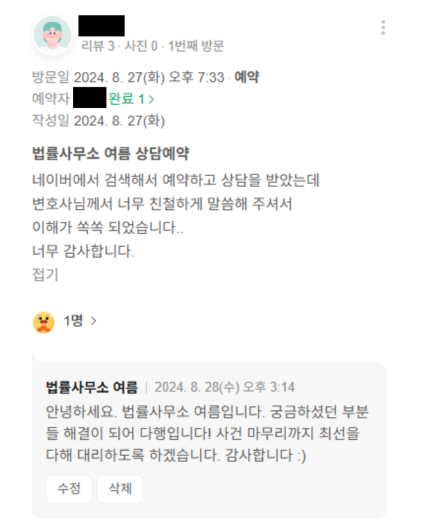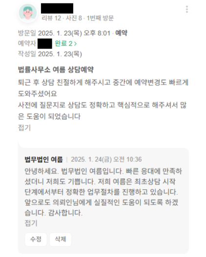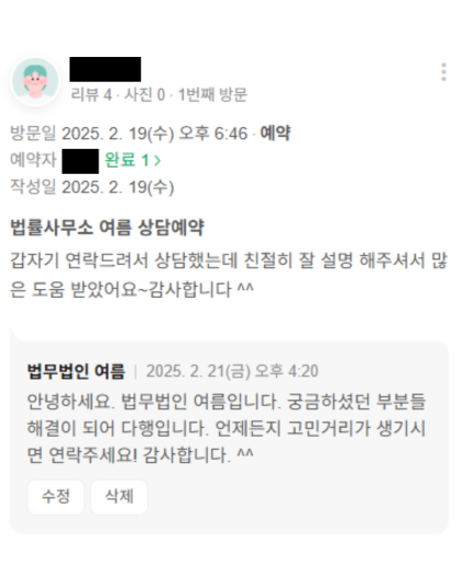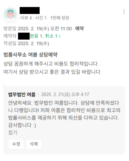 꼼꼼한 상담부터 합리적인 비용까지 전부 좋았어요
